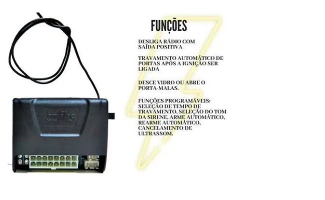 seleção do tom da sirene, arme automático, rearme automático, cancelamento de