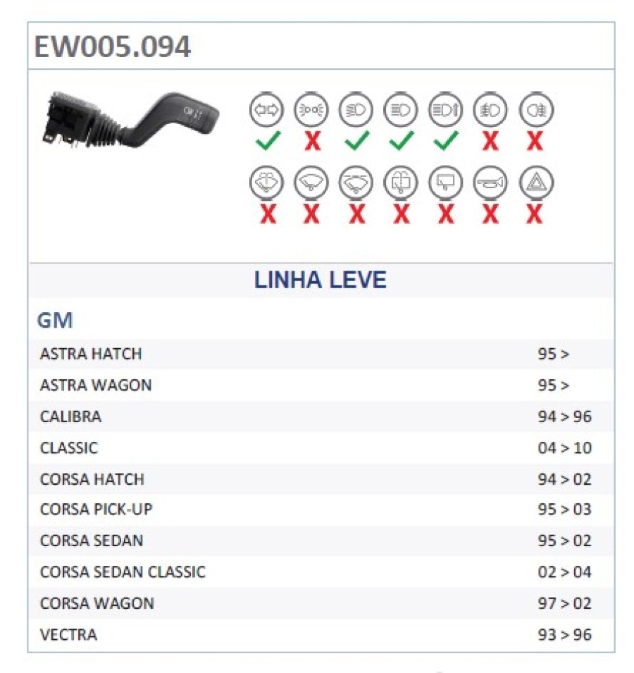 Código Original de Aplicação do produto: GM 90508667 Substitui: Kostal K1816360, Marilia IM12094, Ospina 042089